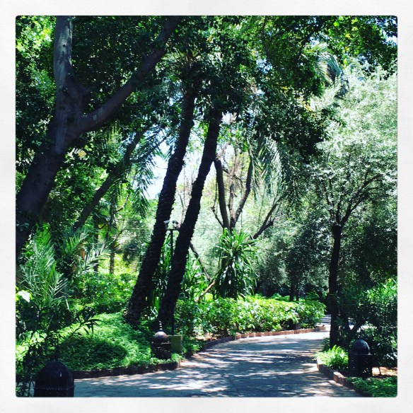 Au fil de ma lecture, j’ai respiré les odeurs de menthe poivrée, de fleurs de bigaradier, admiré les allées bordées d’aloès, les cascades de fleurs éclatantes des bougainvillées, la hauteur des palmiers et le gris argenté des oliviers d’un jardin centenaire perdu au milieu d’un quartier transformé par la modernité d’aujourd’hui. J’ai ressenti l’air sec, chaud et pesant qui peut bruler telle la braise attisée par le Chergui, le vent du Sahara. Une atmosphère chargée des lourdes senteurs issues du mélange du trafic grouillant de la cité, de sa pollution et des odeurs de ses jardins préservés : celle des parcs chargés des effluves de fleurs d’oranger, de jasmin, de roses ou de ma plante préférée, le galant de nuit. J’y ai entendu le vrombissement d’une ville où le béton et les immeubles ont aujourd’hui envahi beaucoup l’espace, entendu les klaxons, le bruit des mobylettes, mais aussi le pépiement des oiseaux de ses jardins secrets.