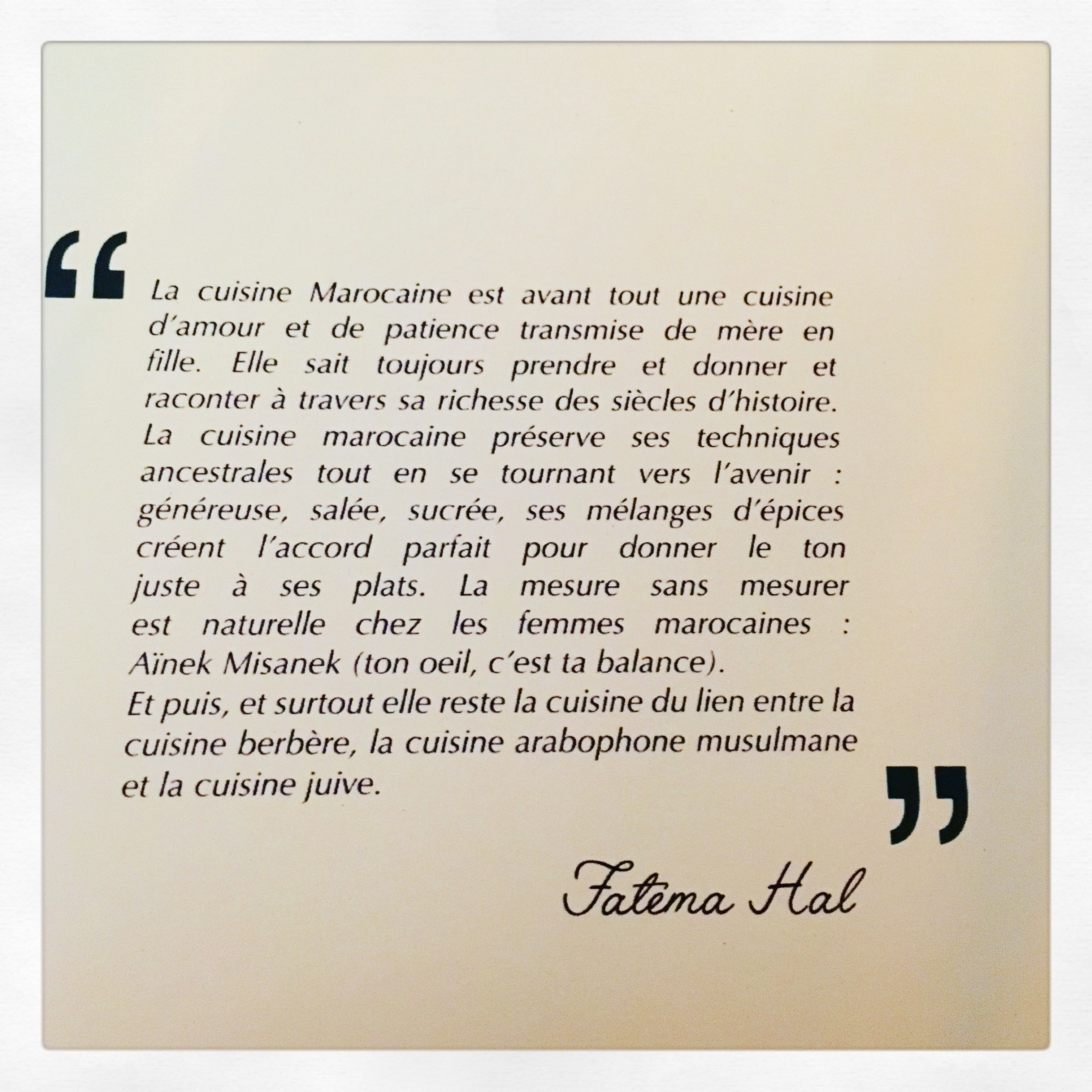 J’ai salivé en humant l’odeur des galettes de semoules fraichement cuites sur le kanoun réalisée par Halima, gardienne de la villa et de ses secrets. J’ai repensé à la magie d’antan de l’ancienne Mamounia qui nous rappelait un passé suranné que j’aurais aimé connaître et que j’affectionnais tant avant sa rénovation.